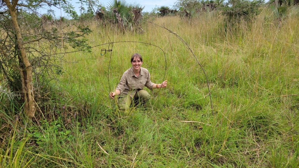 The findings of this work will ultimately be shared with Uganda Wildlife Authority, the government agency responsible for managing wildlife in Uganda. Funding for this project is provided by a multi-year grant from UK Research and Innovation. I also personally received a smaller grant of over 17,500 Australian dollars from the Taronga Foundation. Worth mentioning too is that this research is being conducted in collaboration with two Ugandan-registered NGOs: the “Innovation for Conservation” (ICON) and “Snares to Wares.” ICON provides employment opportunities to Ugandan locals in conservation practice and research, an initiative I participate in by training my research assistants how to collect the data I need. Snares to Wares, in turn, is a project of ICON that trains and employs artisans from the communities surrounding the park. These individuals take the snares that are removed from the park by the government and craft sculptures of wildlife out of them; the sculptures are then sold in nearby tourist lodges and globally. The revenue generated from these activities thus provides an alternative source of income to individuals who were either former poachers themselves or who are susceptible to engaging in poaching.
